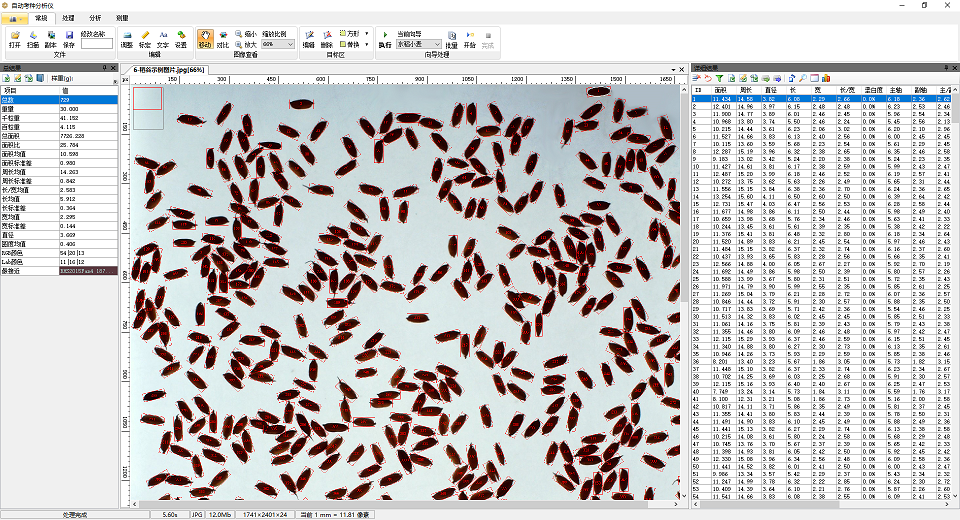 4、可根據(jù)實(shí)際需求自行創(chuàng)制一鍵自動(dòng)分析向?qū)Вm用于水稻、小麥、玉米、豆類、油菜籽、瓜子、蔬菜籽等各類農(nóng)作物的自動(dòng)精確考種、各類糧庫的蟲口自動(dòng)計(jì)數(shù),以及出苗數(shù)、均勻度分析,顯示和輸出計(jì)數(shù)結(jié)果。